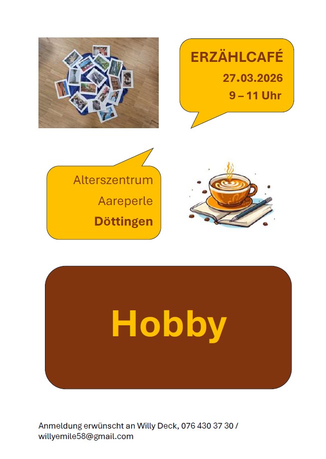 Wir alle haben unsere Lieblingsbeschäftigung. Sei es Malen, Musizieren, Kochen. Sammeln oder Wandern und vieles mehr. Wir alle haben etwas zu erzählen und Neues zu erfahren. Gerne lade ich euch zu diesem spannenden Erzählcafé ein.